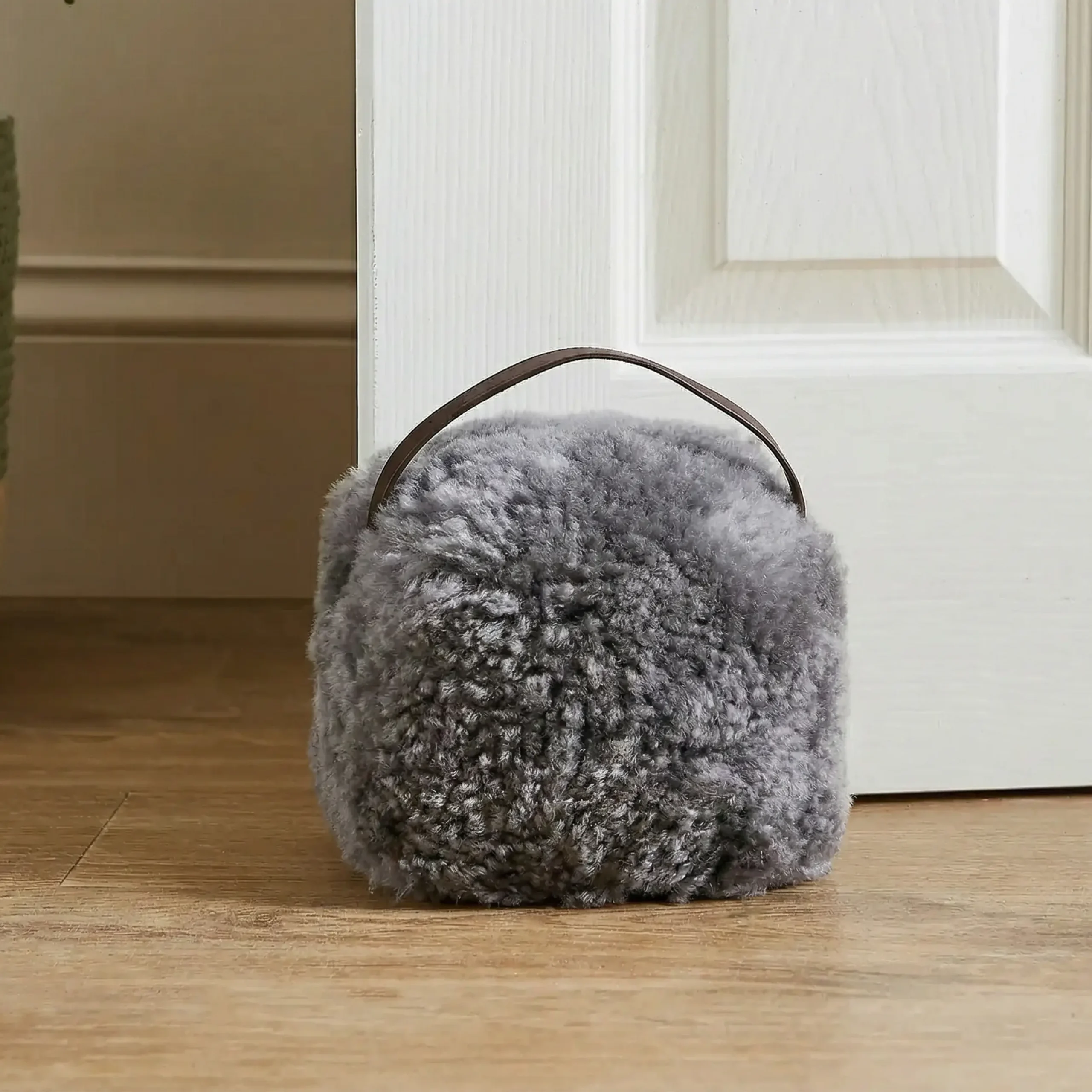 Introducing our Grey Sheepskin Door Stop, the perfect combination of functionality and elegance for your home. Crafted from luxurious sheepskin in a chic grey hue, this door stop adds a touch of sophistication to any room while serving its practical purpose of holding doors open with ease. The soft and plush sheepskin exterior is gentle on floors, ensuring no scratches or marks. With its sturdy construction and weighted design, it effectively prevents doors from slamming shut, providing a quieter and safer environment. Ideal for both traditional and contemporary interiors, our Grey Sheepskin Door Stop is a versatile addition to any home decor scheme. Say goodbye to unsightly door wedges and hello to understated luxury with our Grey Sheepskin Door Stop.