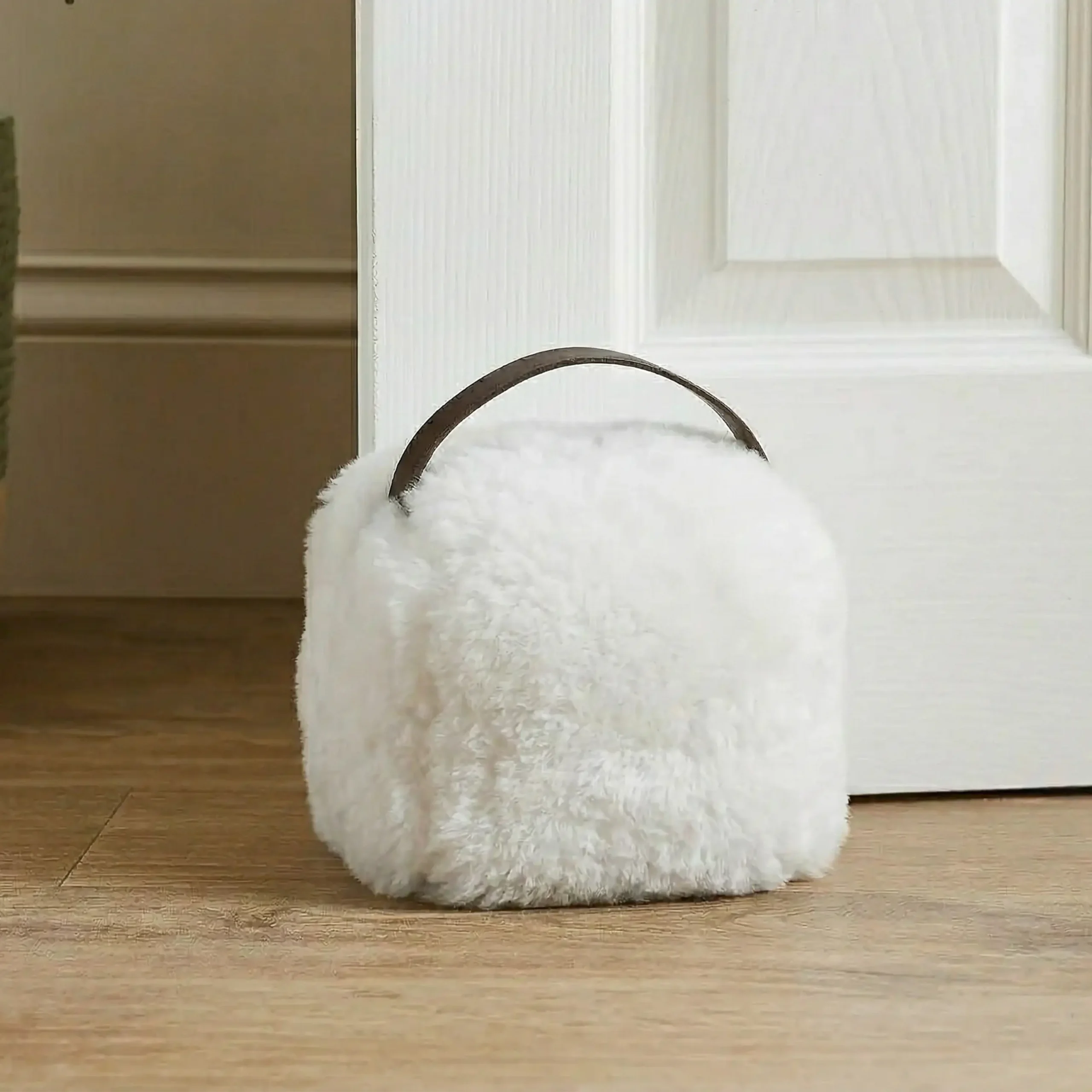 Introducing our White Sheepskin Door Stop, the perfect combination of functionality and elegance for your home. Crafted from luxurious sheepskin in a chic white hue, this door stop adds a touch of sophistication to any room while serving its practical purpose of holding doors open with ease. The soft and plush sheepskin exterior is gentle on floors, ensuring no scratches or marks. With its sturdy construction and weighted design, it effectively prevents doors from slamming shut, providing a quieter and safer environment. Ideal for both traditional and contemporary interiors, our White Sheepskin Door Stop is a versatile addition to any home decor scheme. Say goodbye to unsightly door wedges and hello to understated luxury with our White Sheepskin Door Stop.